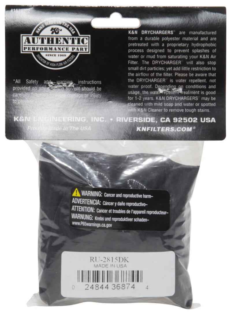 The K&N Drycharger is a silicone treated, polyester wrap that is made to cover K&N Air...