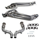 These BBK Performance full length exhaust headers and matching high flow catted mid pipe kits offer unsurpassed value, performance, quality, and fitment. Dyno tested and built right here in the USA our products outperform the competition hands down.Every long tube exhaust header system is built with CNC mandrel bent tubing for unrestrictive exhaust flow and maximum performance. All headers include 3/8" laser cut exhaust flanges, patented scavenging collector design and gasket less ball and socket connectors to easily connect the matching mid pipes.These performance exhaust kits have been designed specifically for your vehicles application to get the most horsepower and torque to the ground for maximum performance across the RPM range.All matching mid pipes included in our kits have high flow catalytic converters installed optimum sound and performance gains.All of these BBK kits are designed to replace the factory shorty style headers and factory mid pipe. Each BBK long tube header and matching mid pipe kit will bolt directly up to your cat back exhaust on your vehicle to complete the system to the tail pipe.Our decades of exhaust design and experience make BBK Performance the number one choice for your late model American car or truck.