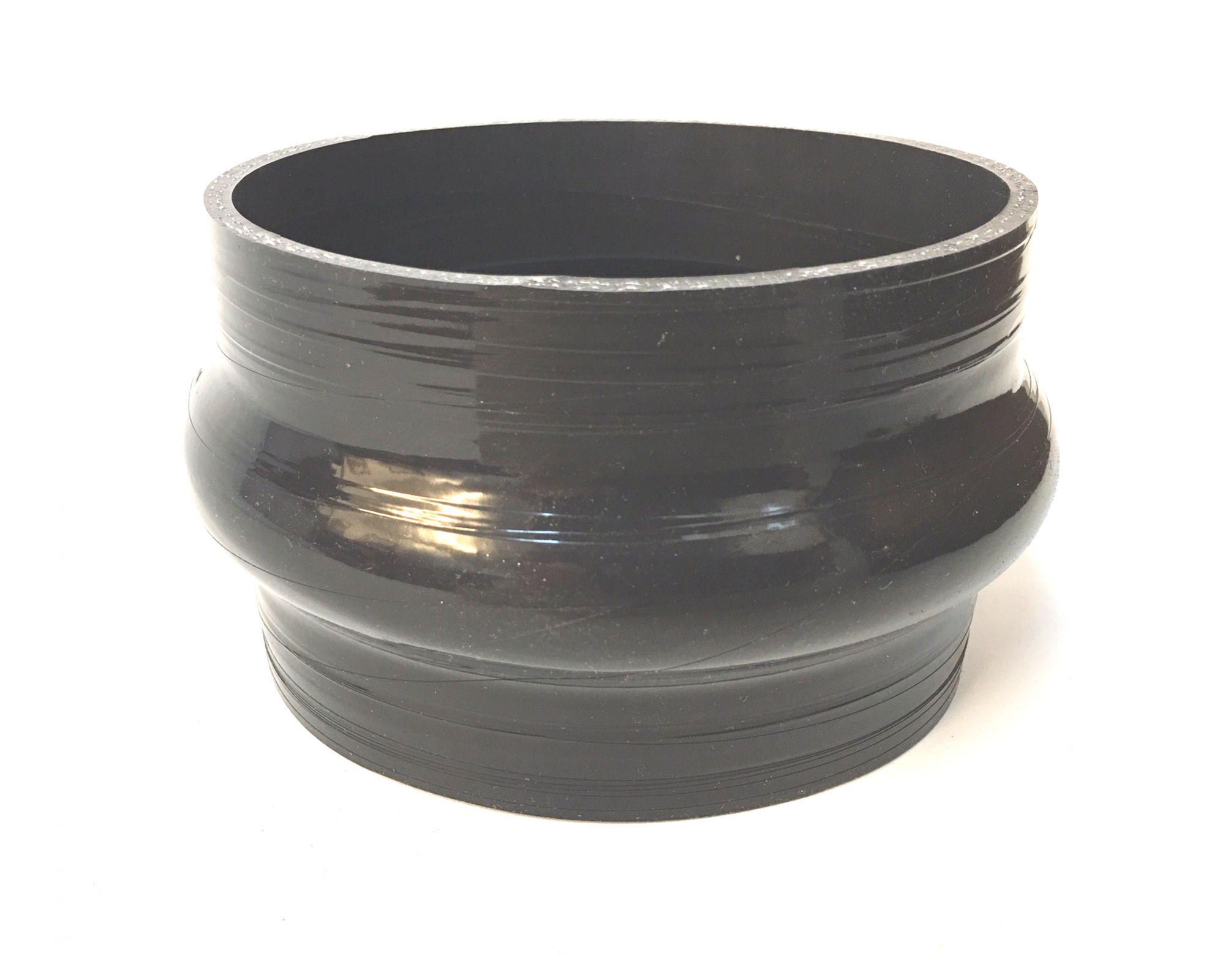 This 3 ply silicone hump hose comes with a black finish. It measures 3 inch in overall length and is 4 inch ID on both ends. It can be used to couple 4 inch tubing together with slight flexibility.