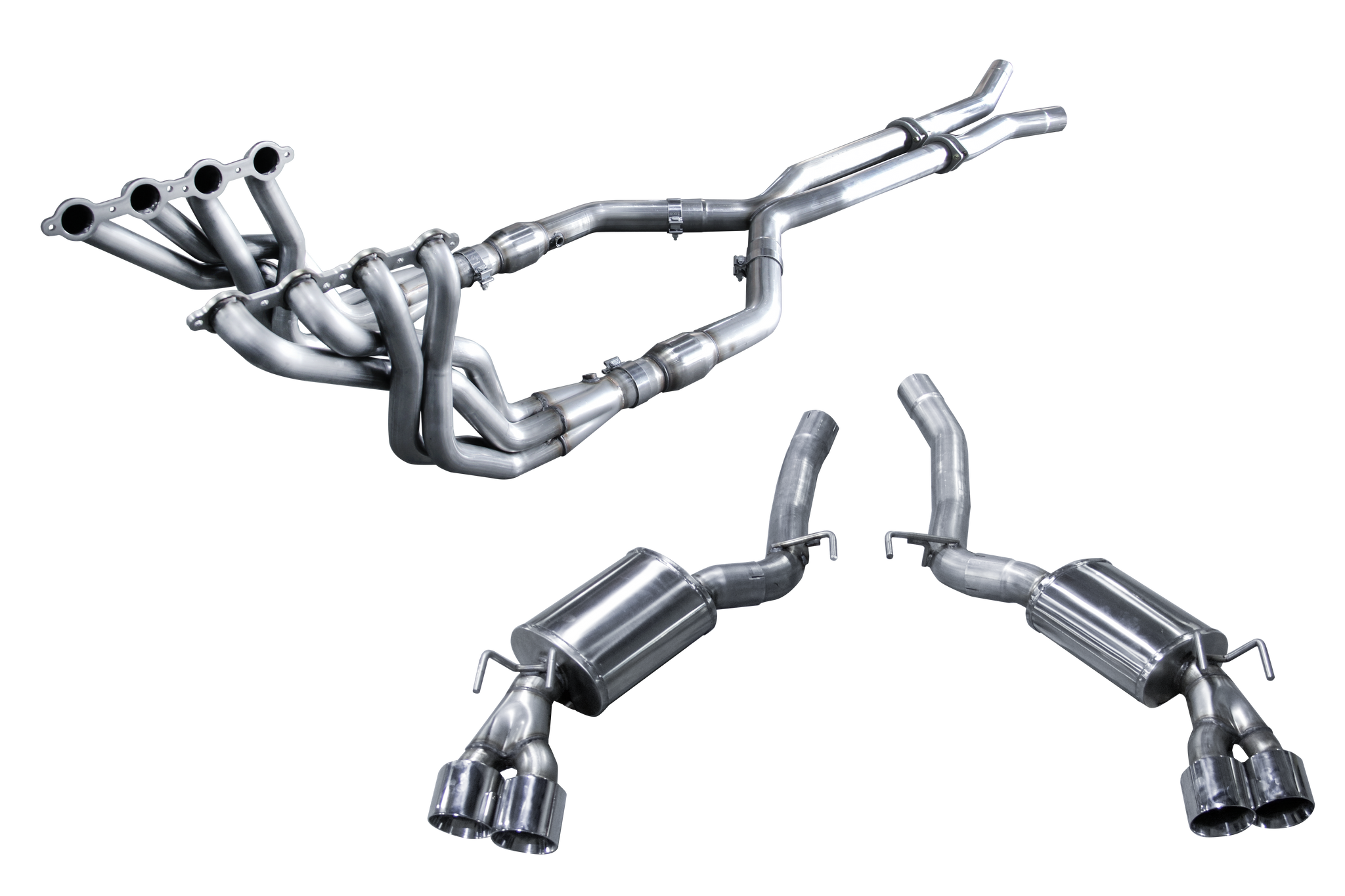 Camaro Z28 2014-2015 Full System by American Racing Headers includes Headers with up to 2" primaries (preferred), 3" X-Pipe, Mid-Pipes, Mufflers and Quad Tips for a complete exhaust system upgrade from the engine to the tailpipes. Engineered and constructed using 304 Stainless Steel throughout and are fabricated with precision cut, 3/8-inch warp-resistant and leak-free stainless steel flanges.