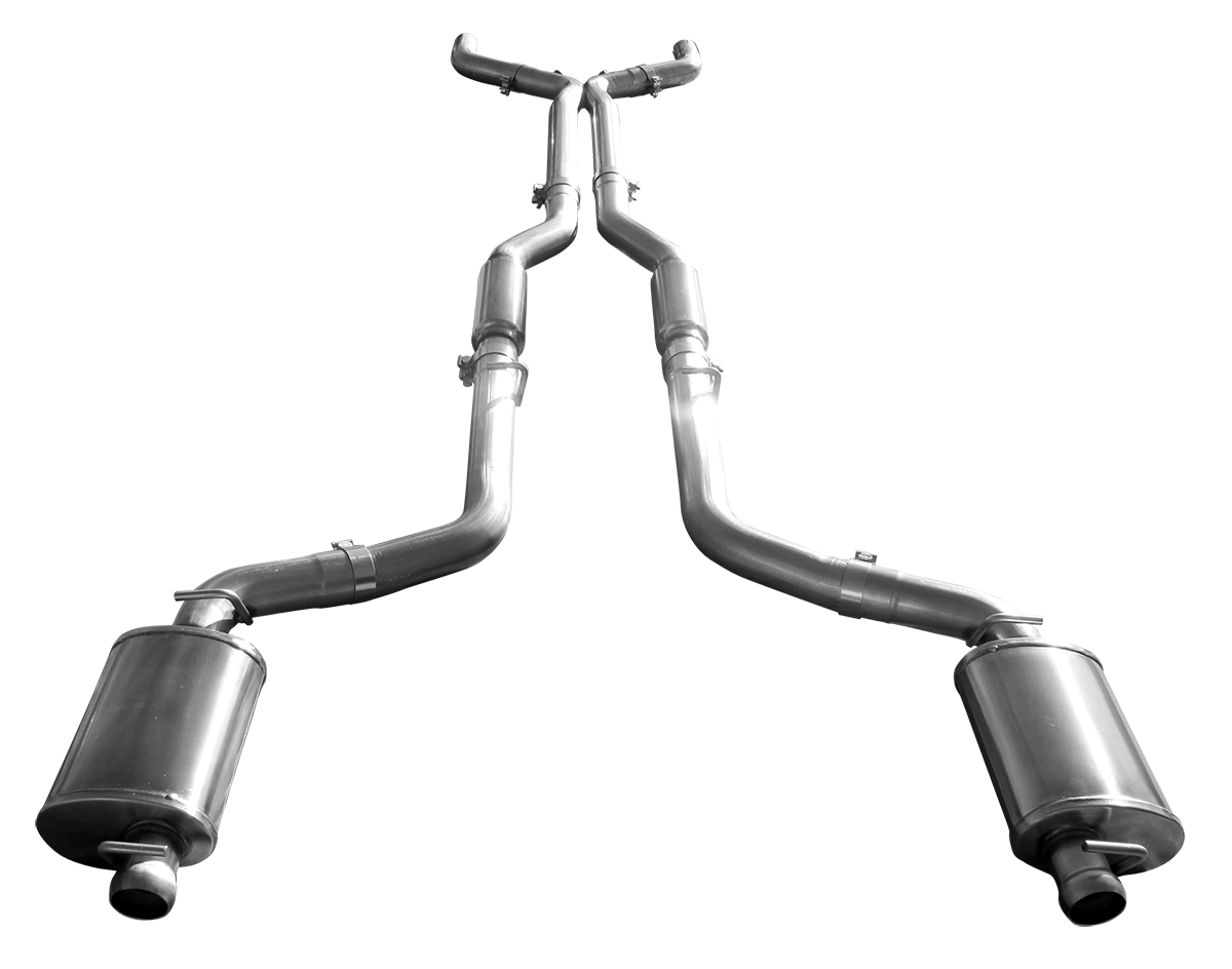 ARH manufactures a unique Catback system that locates our 3" X-Pipe further forward for increased scavenging and improved power. Connects immediately after the stock cats, with a simple mark and cut (no welding required). System features a deep, throaty tone with no noticeable rasp or cabin drone. Includes our Pure Thunder Series mufflers and resonators in all 3" construction and reuses stock adjustable tips.